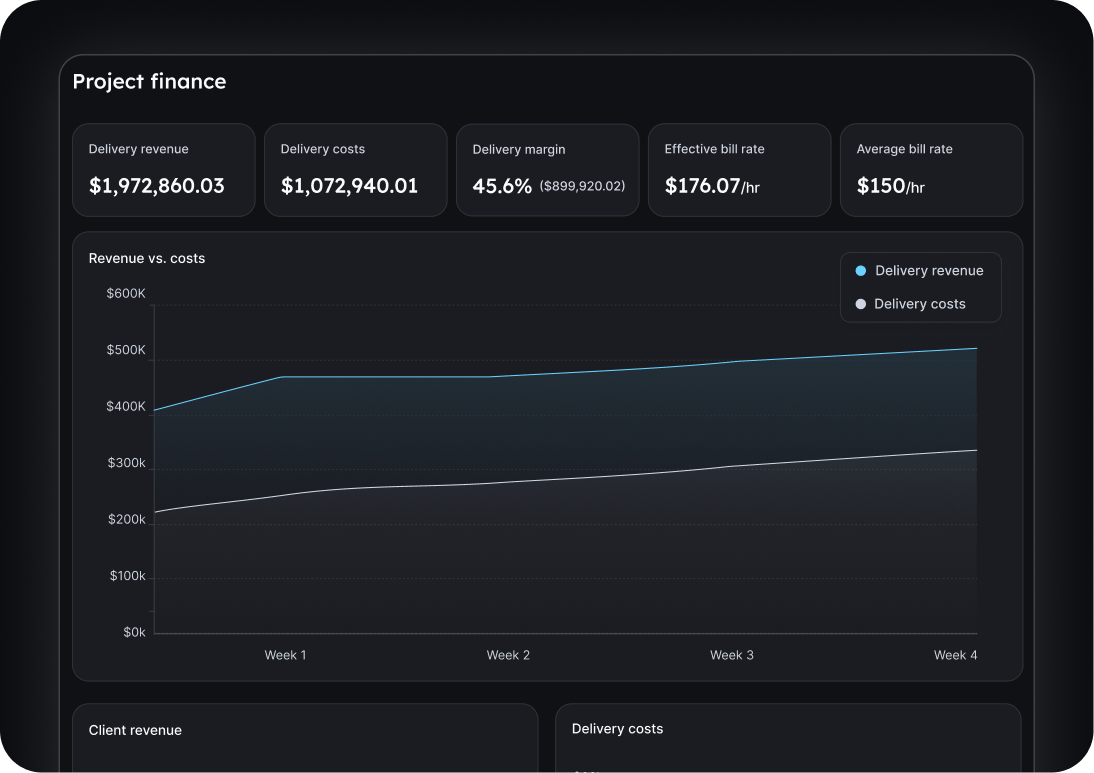 Built for CFOs and Finance teams, the new dashboard is a clear, trusted view of delivery profitability and risk.